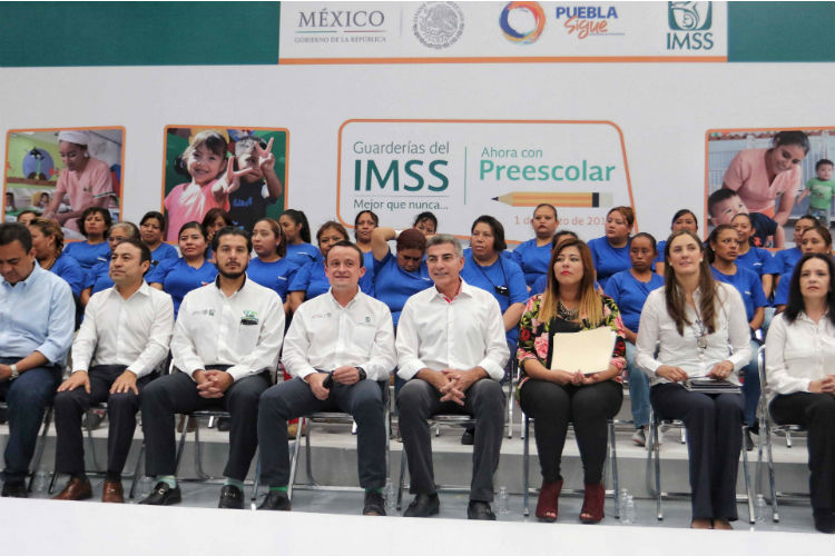 El Director General del Instituto Mexicano del Seguro Social (IMSS), Mikel Arriola y el gobernador Tony Gali, entregaron folios de validez a 37 guarderías del instituto para que mil 487 menores puedan cursar el primer año de preescolar en estas instancias. En este sentido, el Director General del IMSS felicitó al mandatario poblano por su compromiso con la educación y el progreso del estado. Asimismo, anunció que en apoyo al desarrollo de la entidad se invertirán 600 millones de pesos, destinados a la construcción de tres guarderías más, una Unidad Médica Familiar en la Ciudad Modelo, así como la edificación del hospital Rural de Atlixco. El titular del IMSS dio a conocer que, al cierre de enero, Puebla incrementó un 5.4 por ciento en materia de empleo, un punto arriba de la media nacional; además destacó que 400 mil estudiantes poblanos de preparatoria y universidad gozan de seguro social gratuito. En su mensaje, el gobernador Tony Gali señaló que esta certificación es producto del trabajo coordinado entre los gobiernos federal y estatal. Aseguró que con estas acciones se garantiza una atención adecuada a los infantes y se les otorgan más herramientas para fortalecer su desarrollo escolar. "Estoy seguro que con alianzas como ésta, damos a nuestra niñez la oportunidad de desarrollar sus habilidades para desempeñarse en los siguientes niveles de educación", puntualizó. Recordó que uno de sus compromisos de campaña es que todos los preescolares sean dotados con computadoras para asegurar una educación de calidad desde la temprana edad. Adicionalmente, informó se inició con el equipamiento de las primeras 200 escuelas en el estado, en colaboración con la fundación Únete y la Unesco, que serán entregadas en los primeros 100 días de su administración. El mandatario felicitó a las empresas socialmente responsables que velan por sus trabajadores y sus familias, a través de apoyos como el seguro social, como es el caso de Volkswagen, Audi y Kiekert de México. En tanto, el delegado del IMSS en Puebla, Enrique Doger, celebró la apertura del gobernador Tony Gali para implementar de manera coordinada este programa y reiteró su disposición para seguir trabajando en conjunto en beneficio de los ciudadanos. Por su parte, Dulce María Ramírez, en representación de las madres beneficiadas, agradeció el apoyo brindado y dijo que gracias a esta medida sus hijos tendrán un desarrollo integral y seguridad. En el evento estuvieron presentes las secretarias de Educación Pública y Salud, Patricia Vázquez del Mercado y Arely Sánchez, respectivamente; el titular de la Unidad de Evaluación de Delegaciones, Antonio Grimaldo y el director de Prestaciones Económicas y Sociales del IMSS, Igor Rosette. También la delegada de la Secretaría del Trabajo y Previsión Social, Vanessa Barahona; la senadora Lucero Saldaña; el diputado Mario Rincón; el director de la planta Kiekert, Roberto Pereira y el alcalde de Amozoc, José Cruz Sánchez.