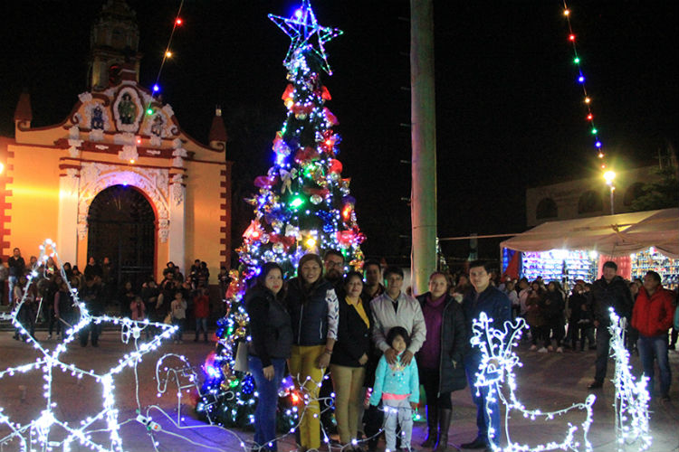 San Miguel Xoxtla, Pue.- En San Miguel Xoxtla, con motivo de los festejos decembrinos, el alcalde Ángel Flores Ramos encabezó la noche del domingo el encendido del árbol de navidad, en el zócalo de la comunidad.