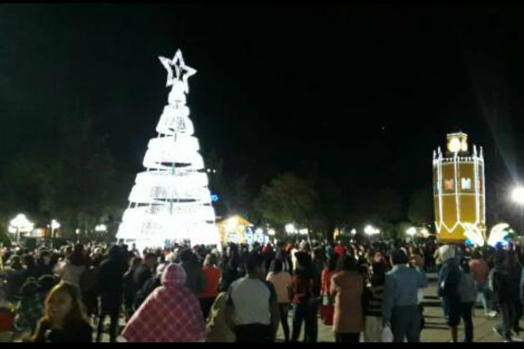 Alcalde de Tepeaca encendió la iluminación del árbol navideño