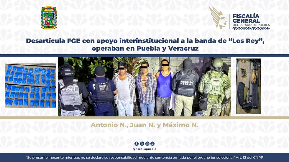 Desarticula FGE con apoyo interinstitucional a la banda de “Los Rey”, operaban en Puebla y Veracruz