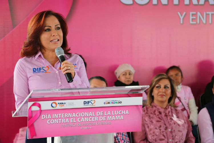 Puebla, Méx. (Quinceminutos.MX).- Con el marco de la conmemoración del Día Mundia de la Lucha contra el Cáncer de Mama, la presidenta del Sistema Estatal DIF (SEDIF), Dinora López de Gali, entregó 61 prótesis externas a mujeres que han ganado la batalla.