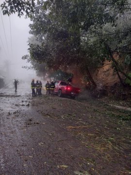 Puebla, Méx. (Quinceminutos.MX).- El paso de Grace por el estado de Puebla dejó afectaciones, principalmente en comunicaciones, por el derribo de árboles sobre carreteras y caminos, así como el derribo de cables de telefónica y energía eléctrica. | Fotos: PC Estatal