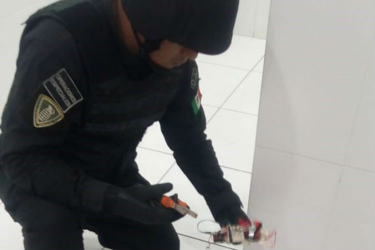Puebla, Méx.- Derivado de una llamada de auxilio, elementos del Grupo Especial Antiexplosivos (Potasio) perteneciente a la Secretaría de Seguridad Pública (SSP), acudieron a la Universidad del Valle de México, ubicada en el municipio de San Andrés Cholula, para retirar un artefacto sospechoso que se encontraba envuelto en cinta adhesiva, del cual sobresalían unos cables.