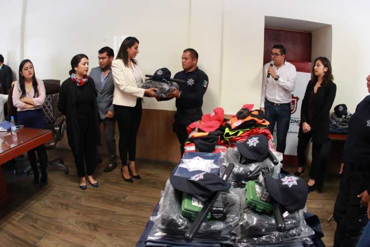 Acompañada del Presidente del Consejo Ciudadano, Lic. Armando García Pedroche, la presidenta municipal de Huejotzingo Angélica Alvarado Juárez hizo entrega también de equipamiento y uniformes para elementos de seguridad municipal por una inversión de más de 720 mil pesos.