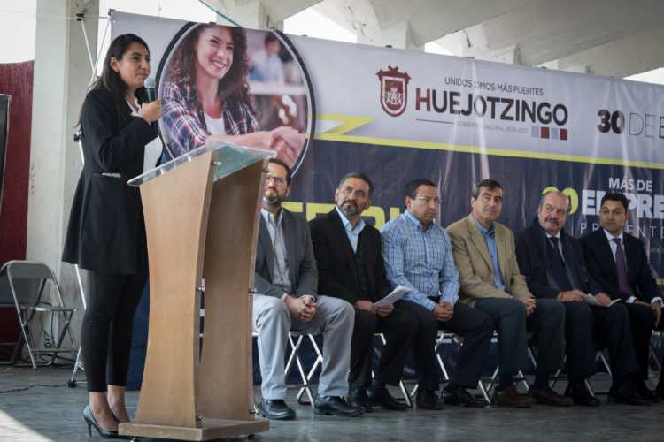 Huejotzingo, Pue.- La Presidenta Municipal de Huejotzingo, Angélica Alvarado Juárez, inauguró la Primera Feria del Empleo Huejotzingo 2019 en la que se dieron cita más de 50 empresas del ramo comercial e industrial, en busca del talento de las y los huejotzingas.