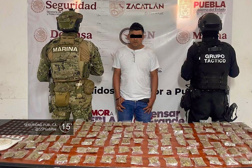 En esta intervención realizada en el municipio de Zacatlán, también fue detenido Abraham N., de 45 años, identificado como integrante de un grupo delictivo presuntamente dedicado al narcomenudeo y otras actividades ilícitas.