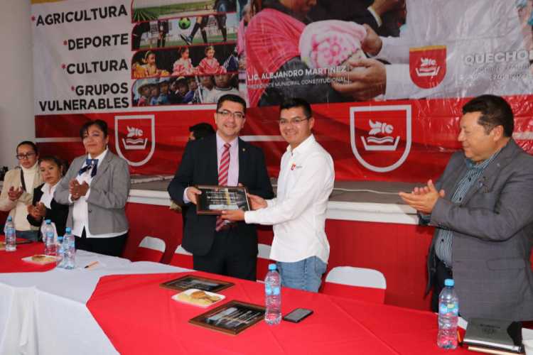 Posteriormente el Dr. Federico Hernández y El Director de la IEDEP hicieron un reconocimiento al presidente municipal de Quecholac por el apoyo que ha brindado en materia de educación a todos los estudiantes del municipio.