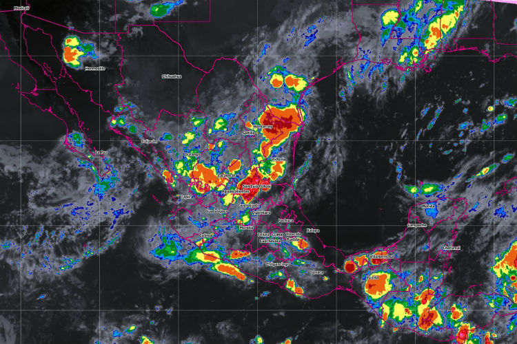 De acuerdo con el Servicio Metereológico Nacional se prevé el desarrollo de nubes de tormenta con lluvias muy fuertes a localmente intensas acompañadas de actividad eléctrica, vientos fuertes y posible caída de granizo en Coahuila, Nuevo León, Tamaulipas, San Luis Potosí y Chiapas; lluvias muy fuertes en Chihuahua, Durango, Zacatecas, Guerrero, Oaxaca, Veracruz y Quintana Roo; fuertes en Baja California Sur, Sinaloa, Jalisco, Aguascalientes, Guanajuato, Querétaro, Michoacán, Puebla, Tabasco, Campeche y Yucatán e intervalos de chubascos en el Estado de México y la Ciudad de México.