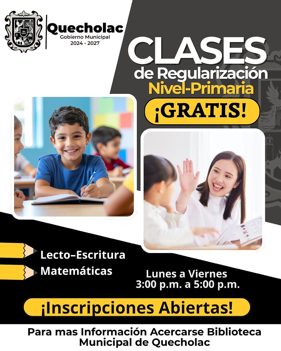 Quecholac, Pue.- Con el objetivo de fortalecer el aprendizaje de la niñez del municipio, el Ayuntamiento de Quecholac, encabezado por la presidenta municipal Guadalupe Martínez Gerardo, anunció el inicio de clases gratuitas de regularización para nivel primaria.