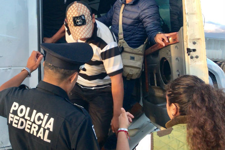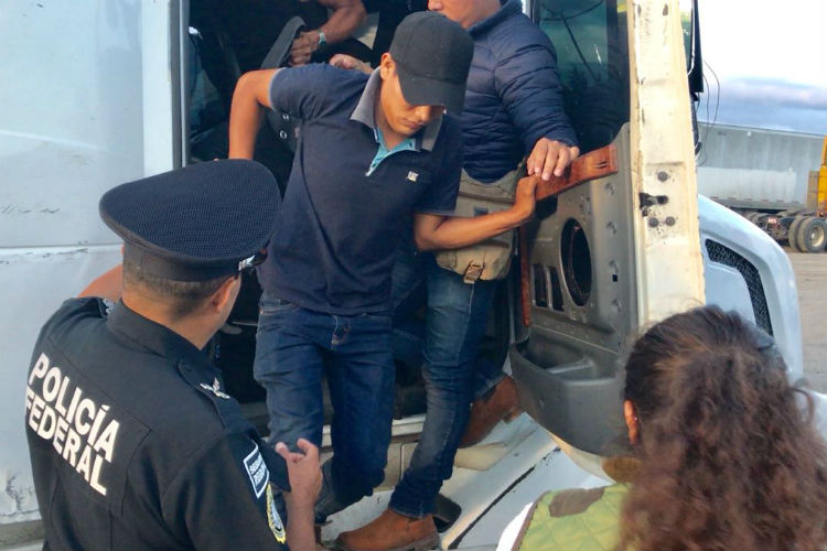 Elementos de la Policía Federal rescataron a 22 migrantes que viajaban en un tractocamión en la carretera México -Veracruz la tarde de este miércoles.
